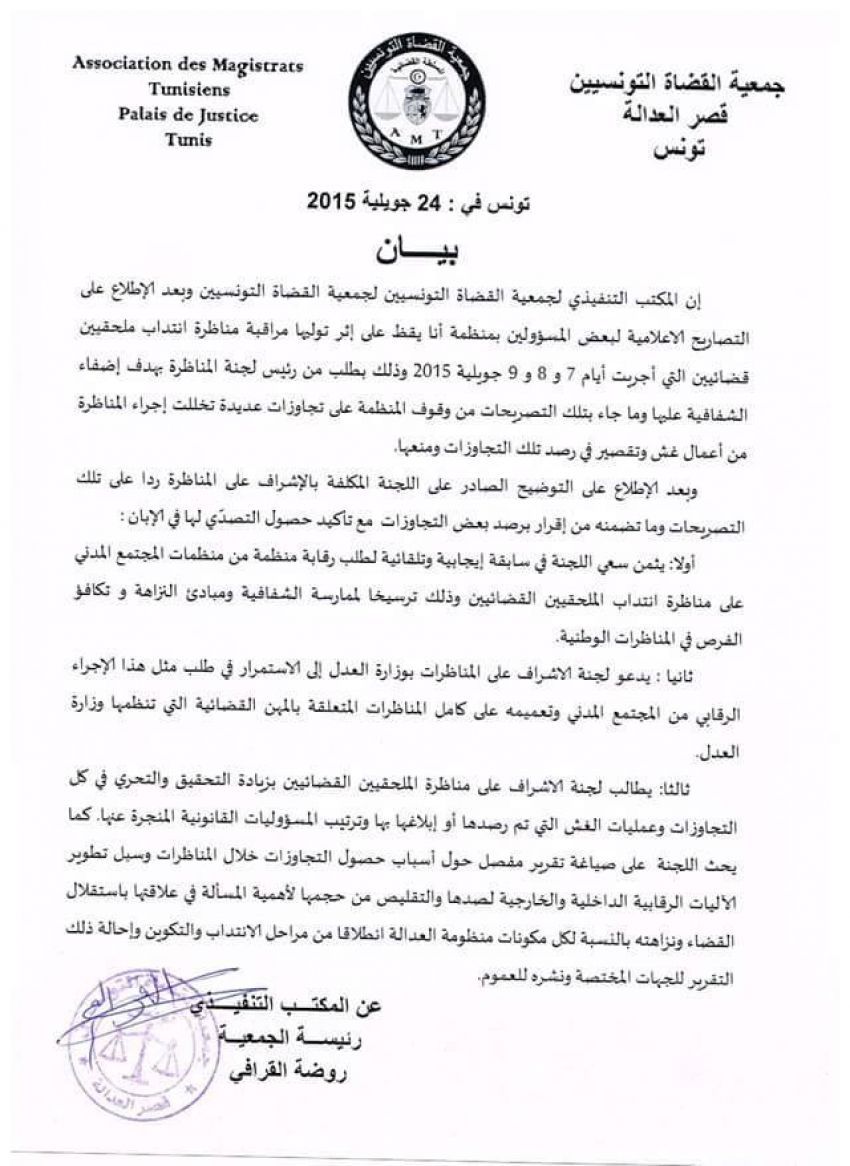 بيان جمعية القضاة بخصوص مراقبة منظمة أنا يقظ لمناظرة الملحقين القضائيين