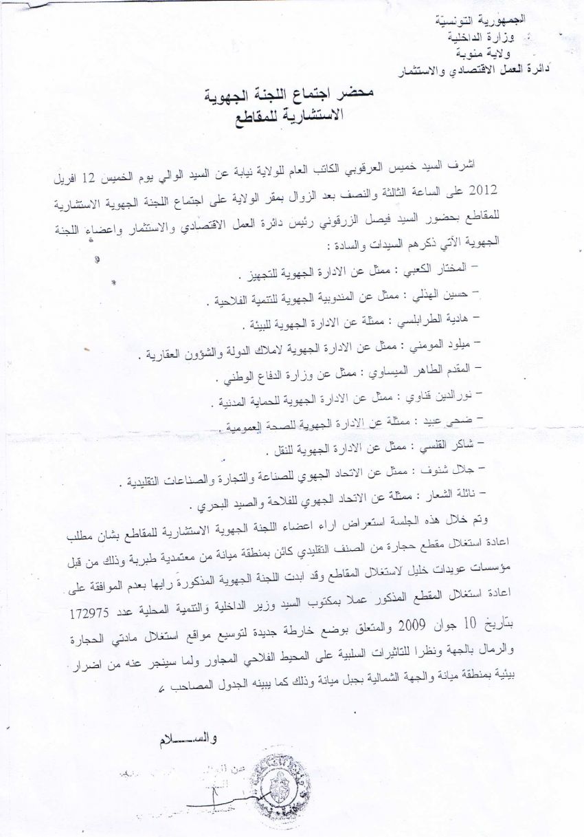 ولاية منوبة تمكن خليل عويدات من نسخة ورقية من محضر جلسة اللجنة الاستشارية للمقاطع