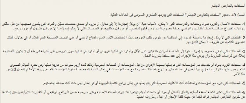 حيث حدّد الفصل 49 من نفس الأمر شروط الالتجاء للتفاوض المباشر والمتمثلة أساسا في: