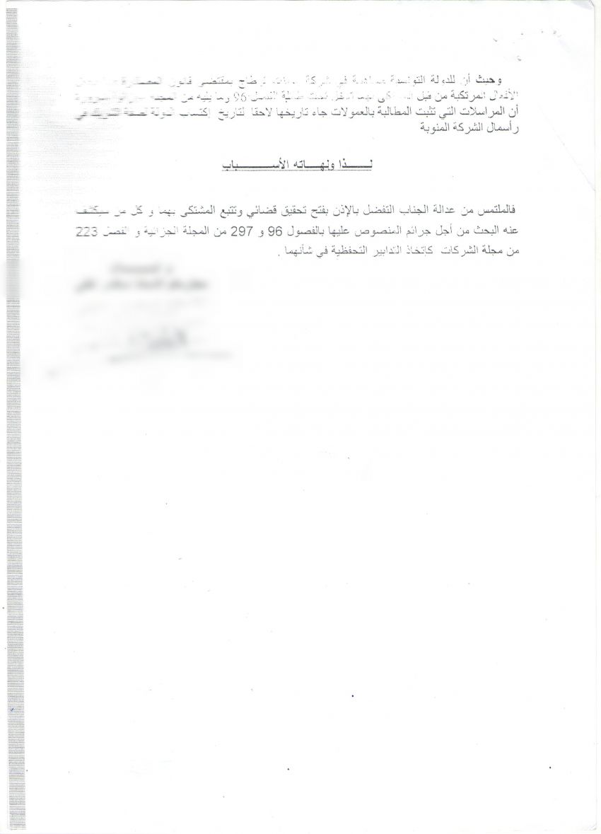 وبناء عليه تطلب منظمة أنا يقظ من كلّ من رئيس الحكومة ووزير أملاك الدولة والشؤون العقارية مراجعة هذا الملف وتحديد الأشخاص المسؤولين عن سوء التصرّف والتفريط في المال العام والبحث في سبل فرض الائتمان على مال المدعو لزهر اسطى بما هو حفاظ على المال العام.