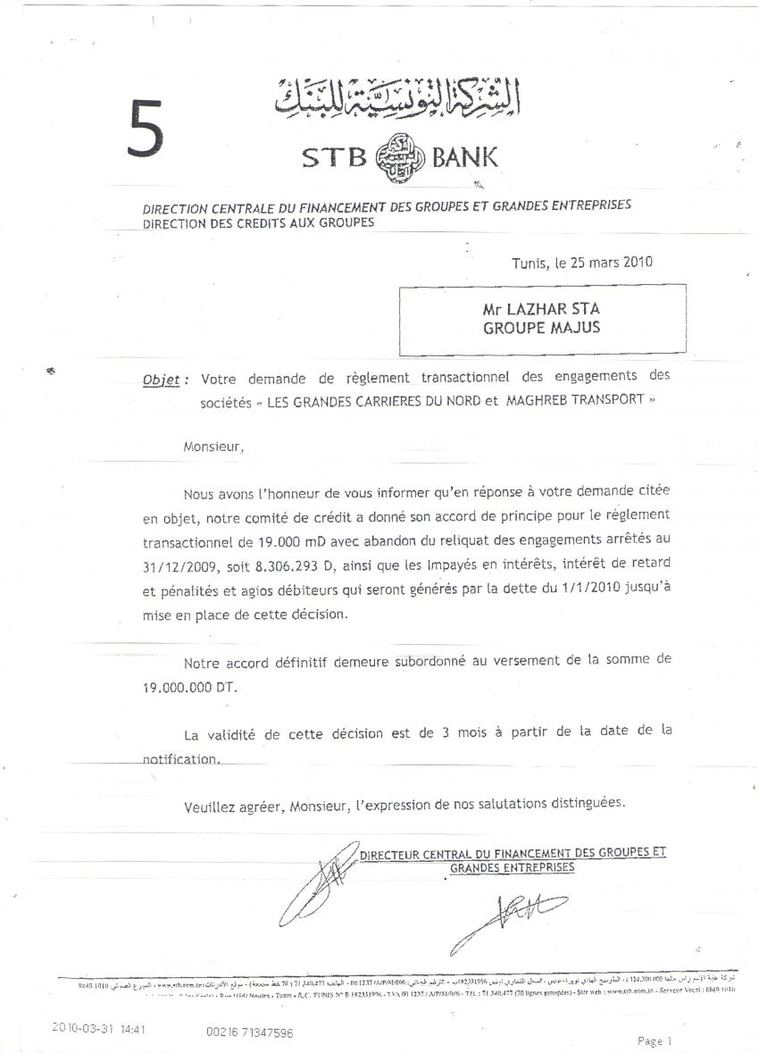 ثانيا: طرح ديون المدعو لزهر اسطى والشركات التابعة له من قبل المؤسسات البنكية العمومية والخاصّة (تقرير عبد الفتاح عمر ص 231)