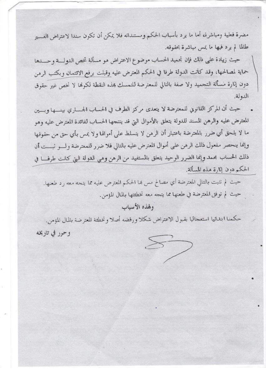 هذا التحيل أكّده القاضي في حكم الاعتراض على رفع الائتمان الذي قامت به شركة اسمنت قرطاج، حيث أشار الى انّ "قبول الدولة برفع الائتمان وبكتب الرهن دون اثارة مسألة التجميد انّما يلحق ضرارا بها وبحقوقها "