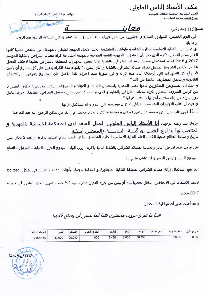 في ذات السياق تكشف معاينة اجراها أحد عدول التنفيذ في 27 جويلية 2017، بطلب من النقابة الأساسية لبحارة الشابة وملولش، عن ''عدم استكمال إزالة بعض مصائد الشرافي بالشابة،'' مبينة انها منجزة بالاعتماد على ''اوتاد مدعمة بالشباك لحصر الأسماك''. وقد تم القيام بهذه المعاينة بعد تأجيل تنفيذ بتة كراء هذه المصائد لاكثر من مرة. ويبدو ان ضغوطات قد مورست من قبل بعض متسوغي هذه المصائد لارجاء انجاز هذه البتة، بل بلغ الامر حدّ لجوء البعض الى أنواع شتى من الوعيد والتهديد وحتى التعنيف في خضم ارتفاع لمنسوب الأزمة.