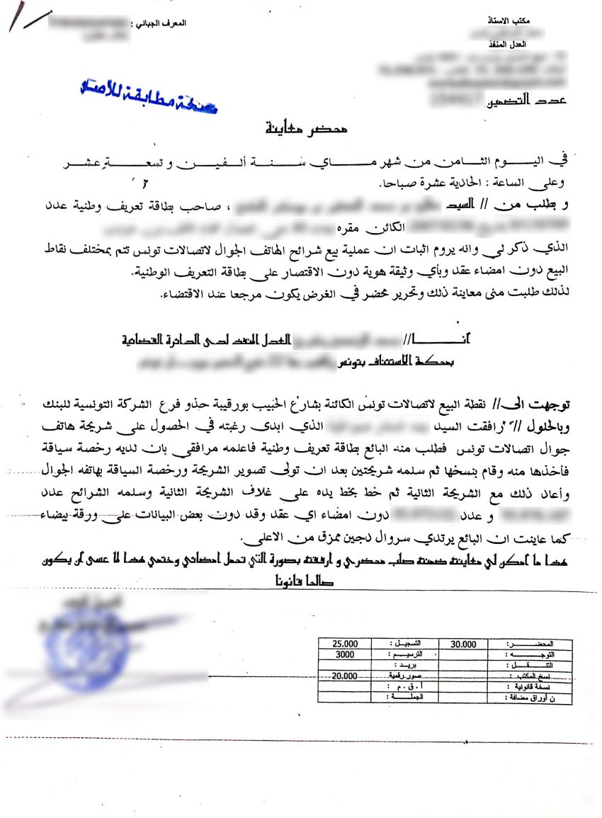 نسخة من معاينة قانونية تكشف اخلالات في بيع خطوط الهاتف
