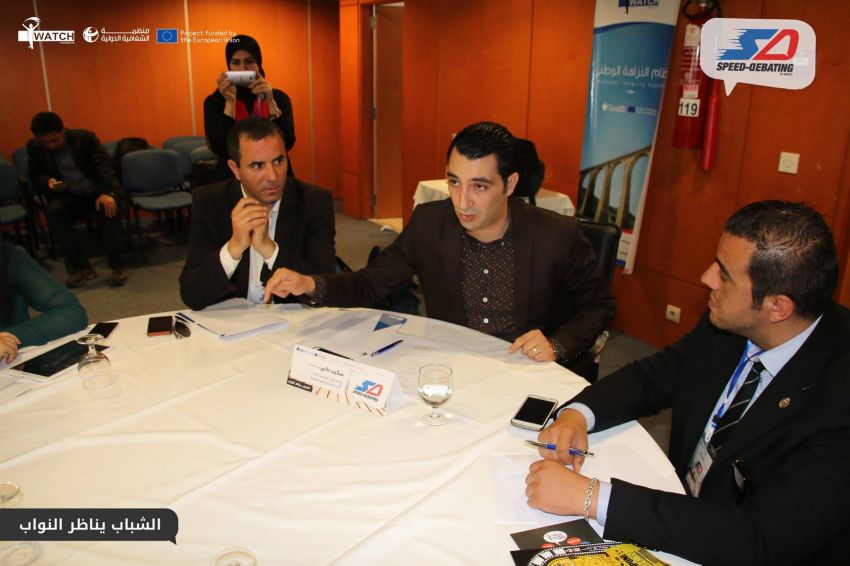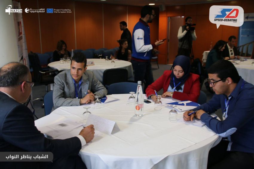 في إطار تحسين مؤشرات النزاهة المتعلقة بالبرلمان كركيزة من ركائز مشروع " نظام النزاهة الوطني " (مشروع لمنظمة "أنا يقظ" و "منظمة الشفافية الدولية") ومن أجل فتح باب التواصل والحوار المباشر بين الشعب وممثليه خاصة الشريحة الشبابية، نظمت أنا يقظ يوم الجمعة 1 أفريل 2016 للمرة الأولى بتونس تظاهرة Speed-Debating