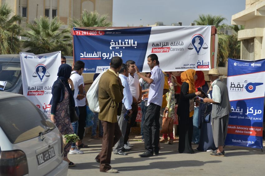 انطلقت قافلة النزاهة لمنظمة أنا يقظ في رحلتها بمختلف ولايات الجمهورية حيث حطت أمس الأحد 10 أكتوبر رحالها بساحة الحرية بمدينة مدنين وذلك بهدف التعريف بعمل مركز "يقظ" لدعم وإرشاد ضحايا الفساد ولتقديم استشارات قانونية وتقبل الشكاوى المتعلقة بشبهات الفساد.